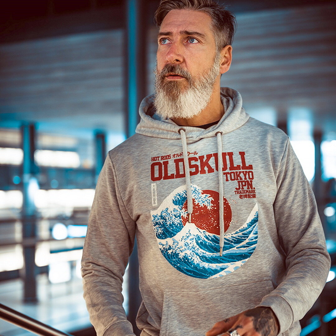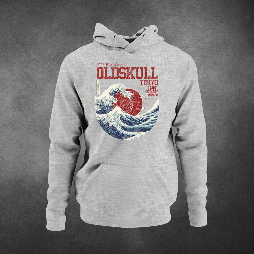 Oldskull Hoodie bedruckt mit "Big Wave of Kanagawa" Druck