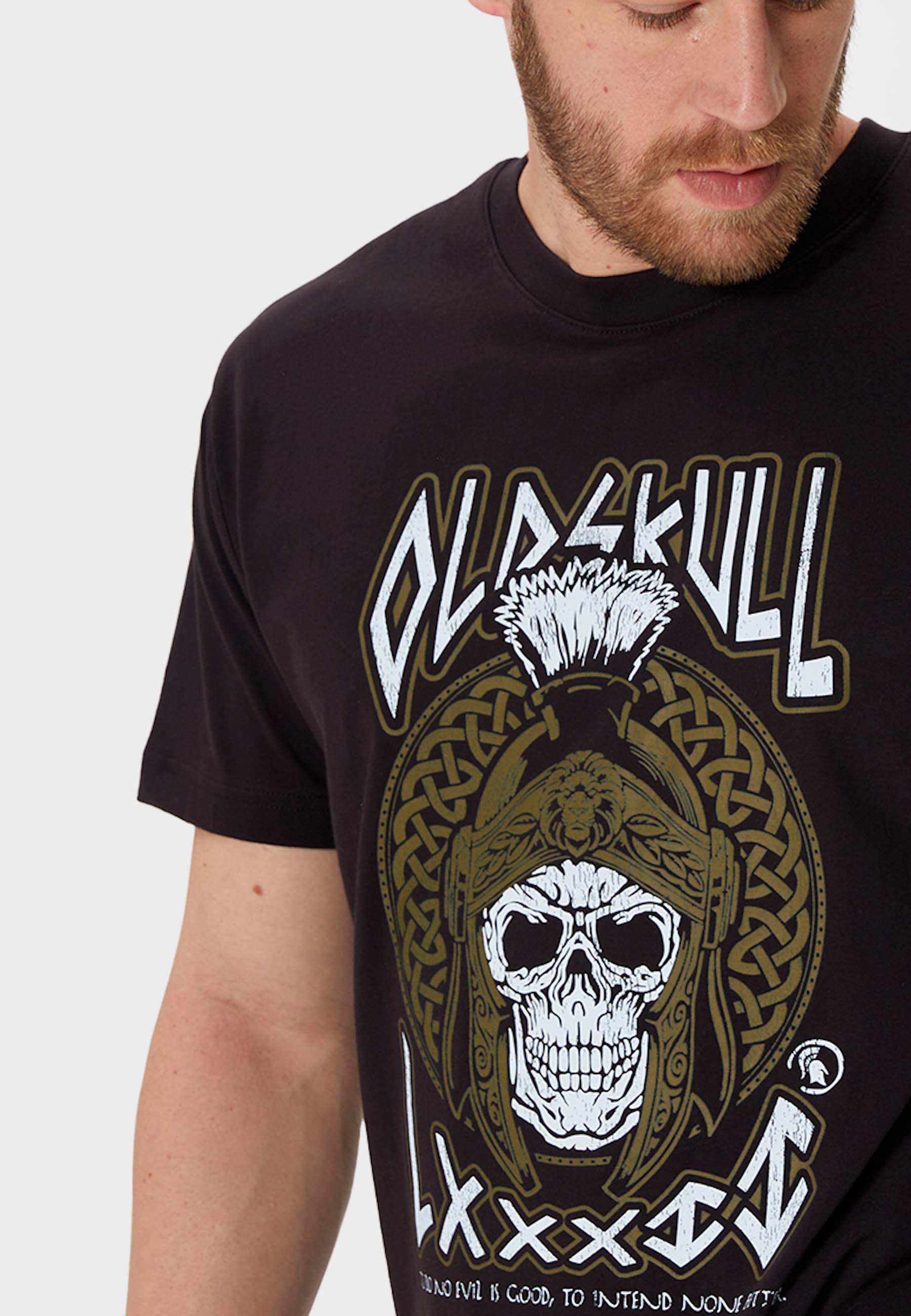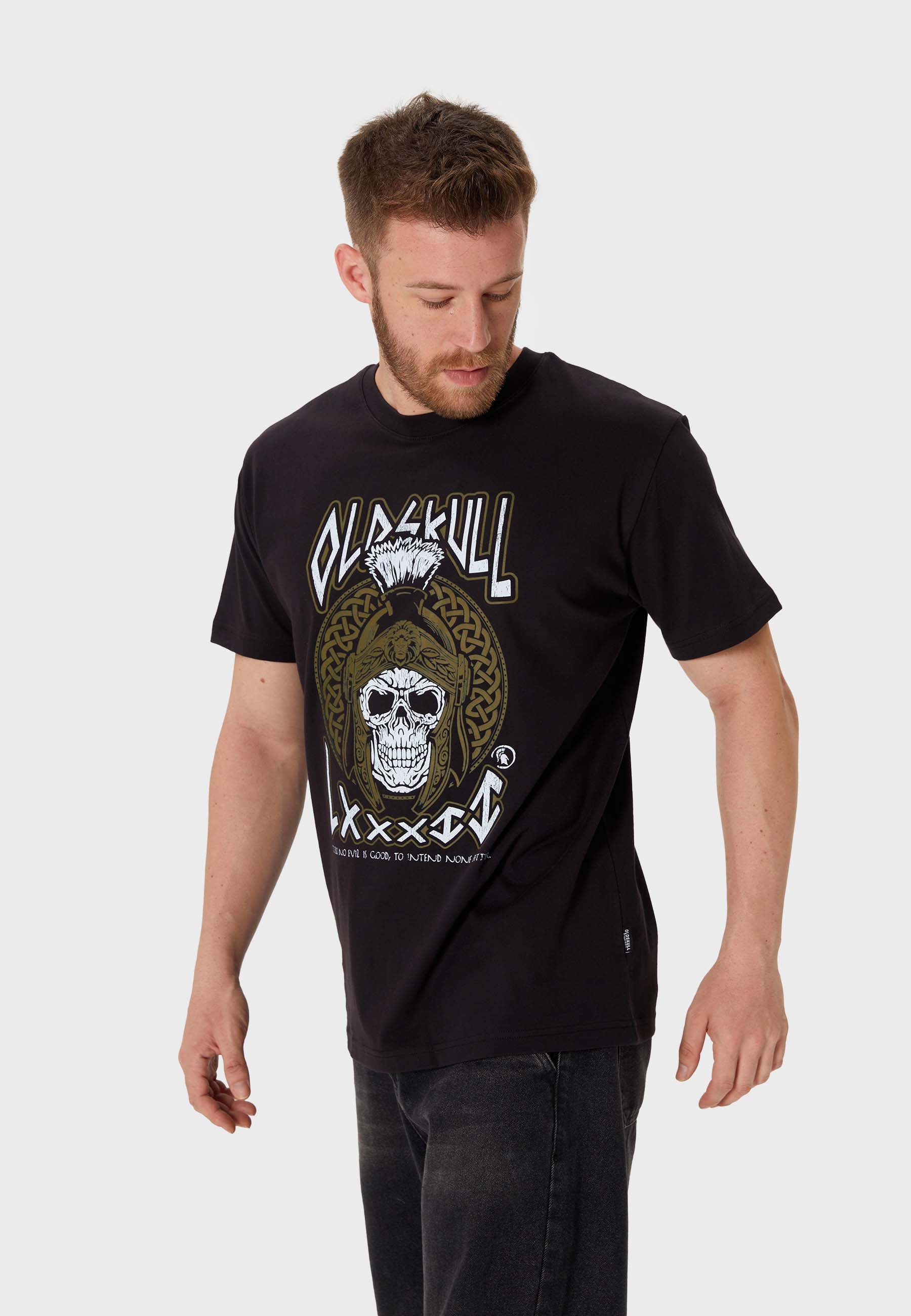 Print: Römischer Soldatenhelm mit Totenkopf, Oldskull Schriftzug und römische Zahl LXXXII