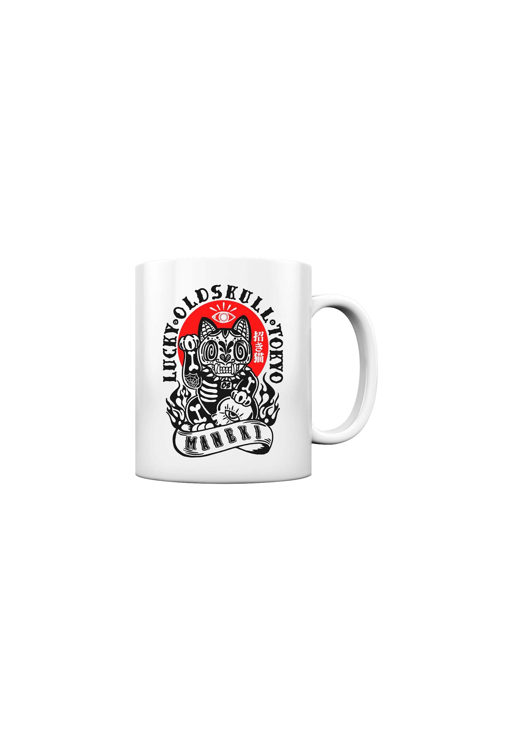 Print: Backprint of an Asian lucky cat in skull style