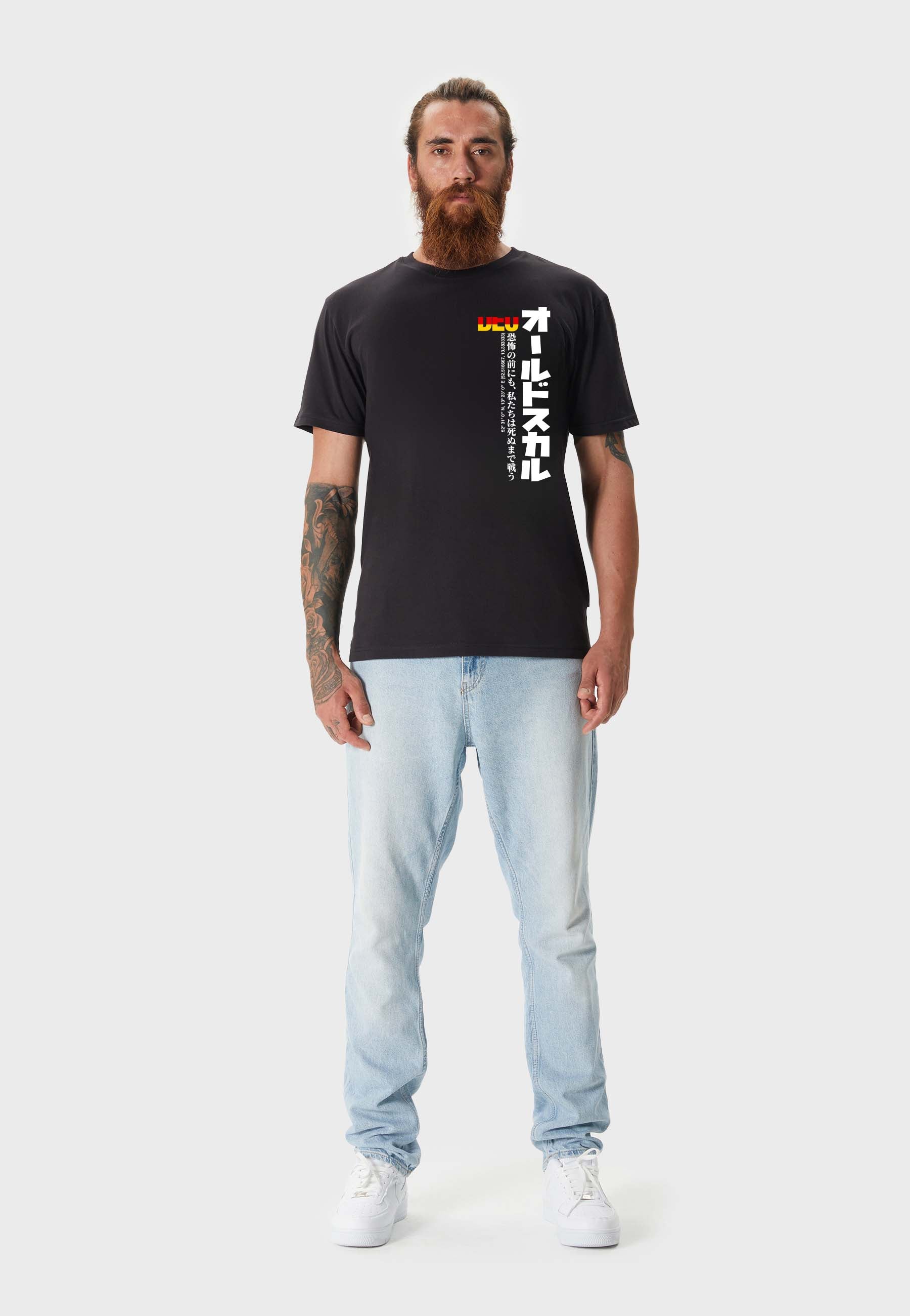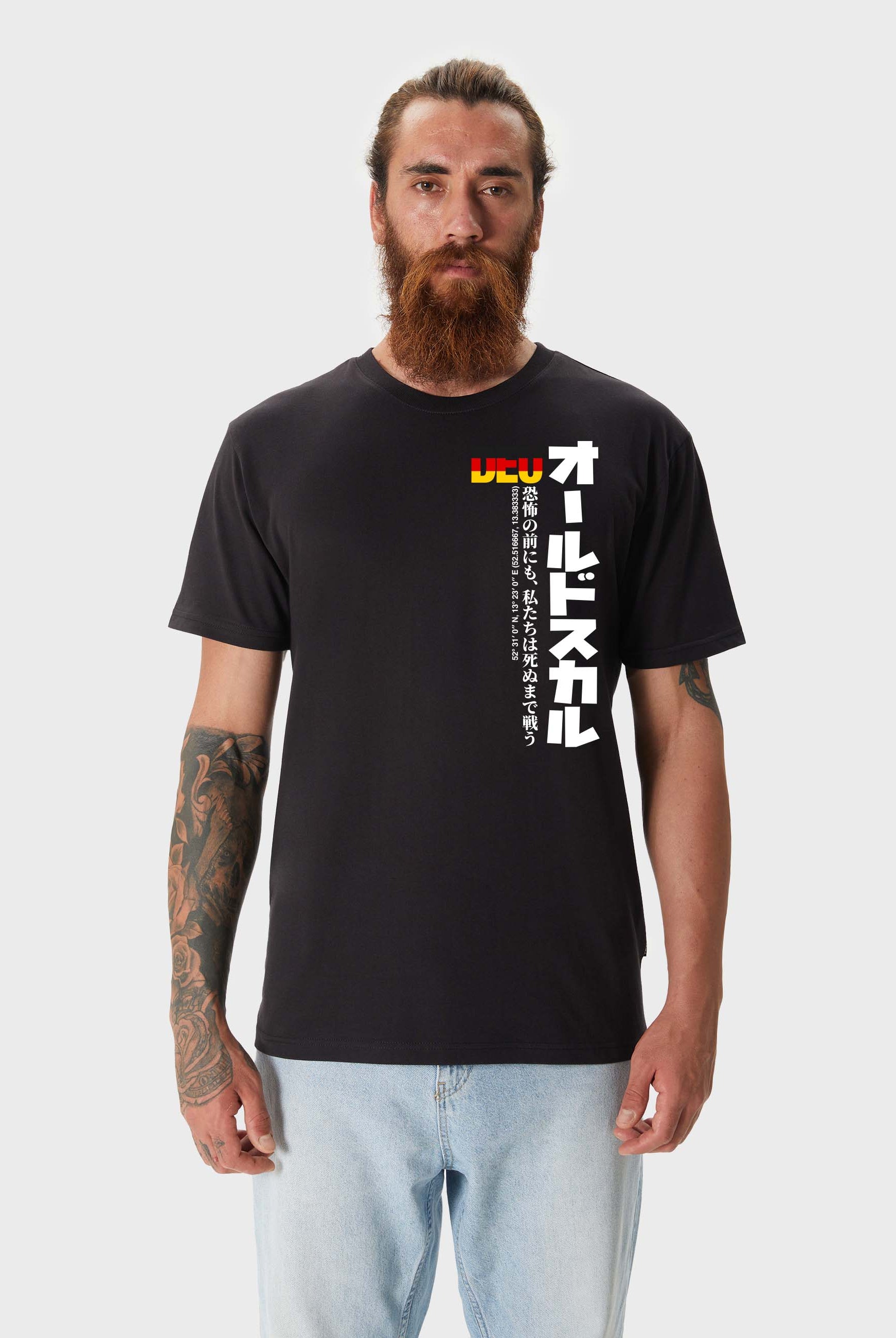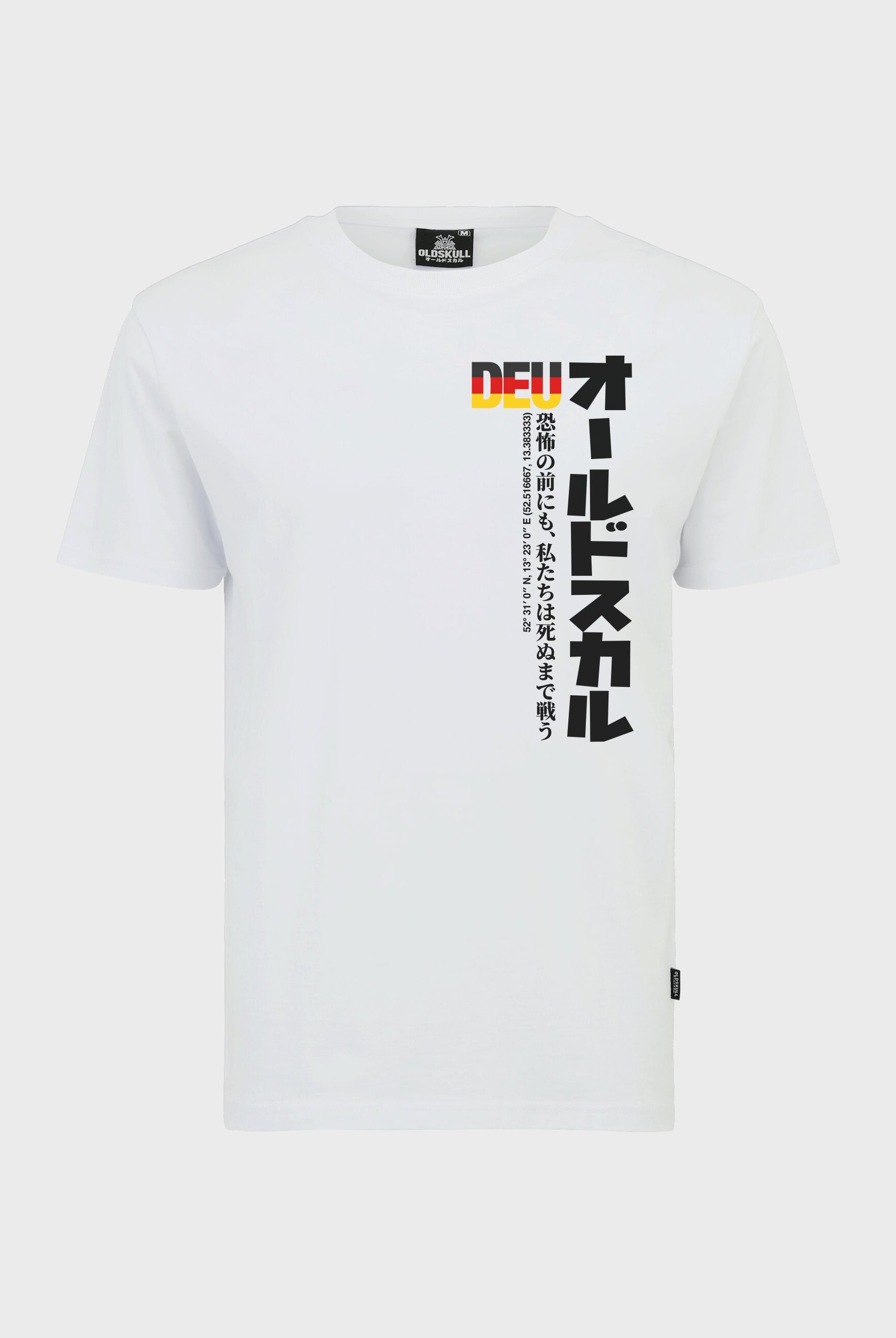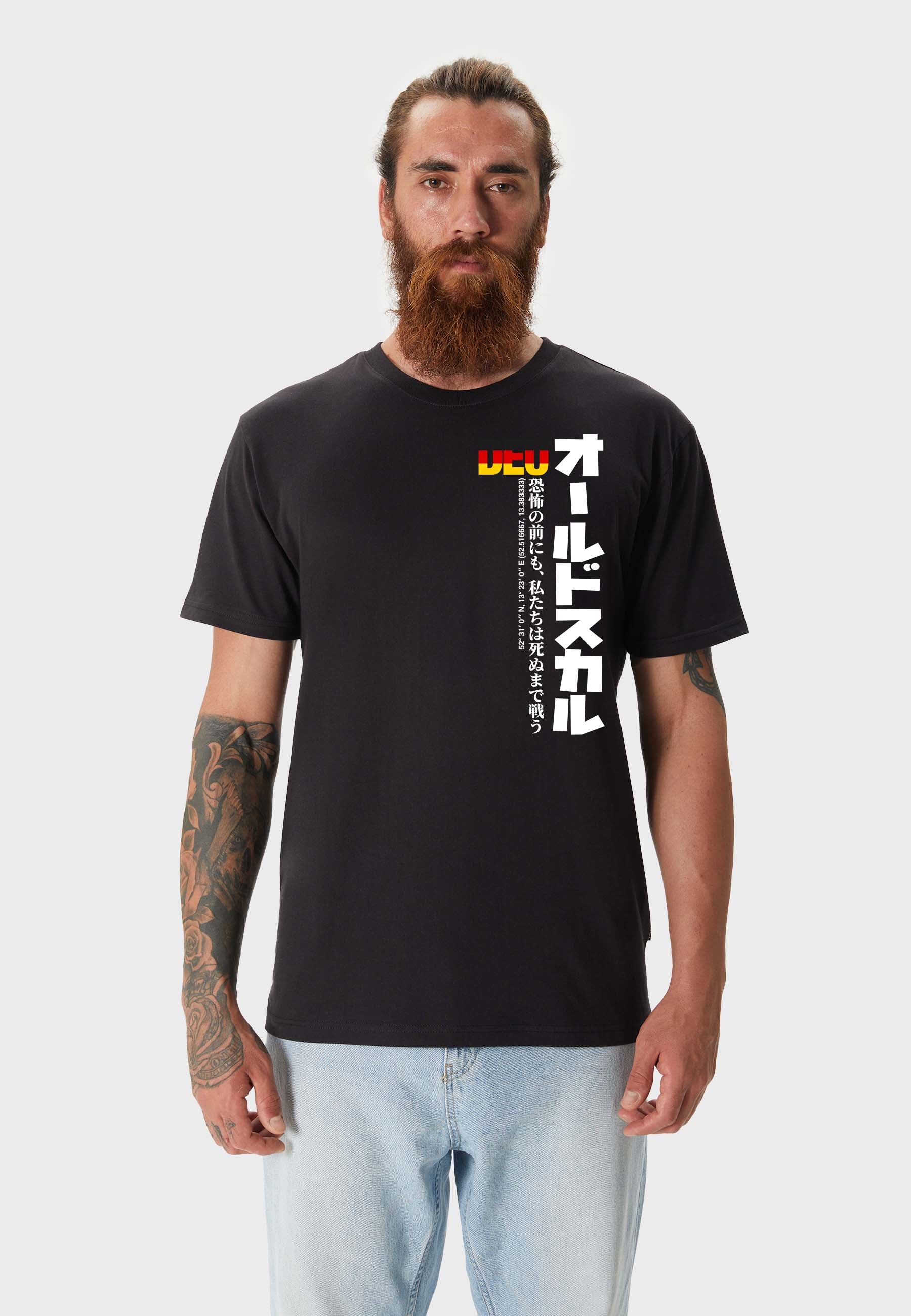 Print: DEU lettering in flag look with Japanese characters Oldskull