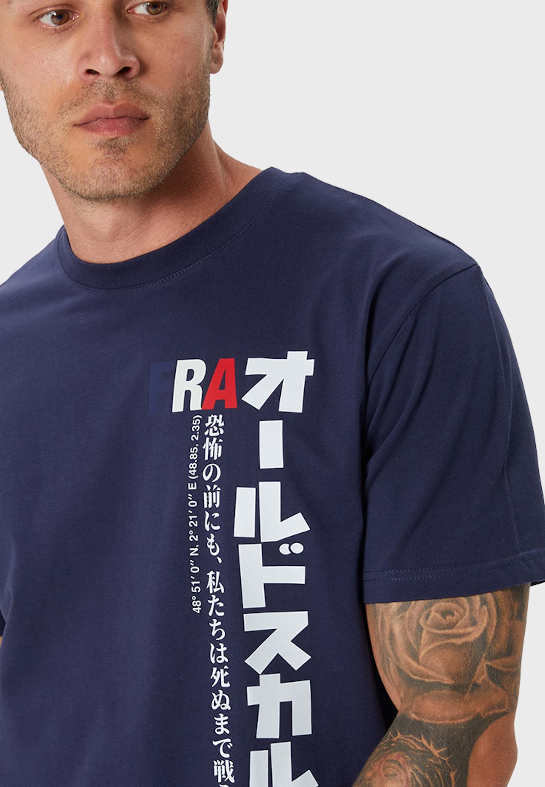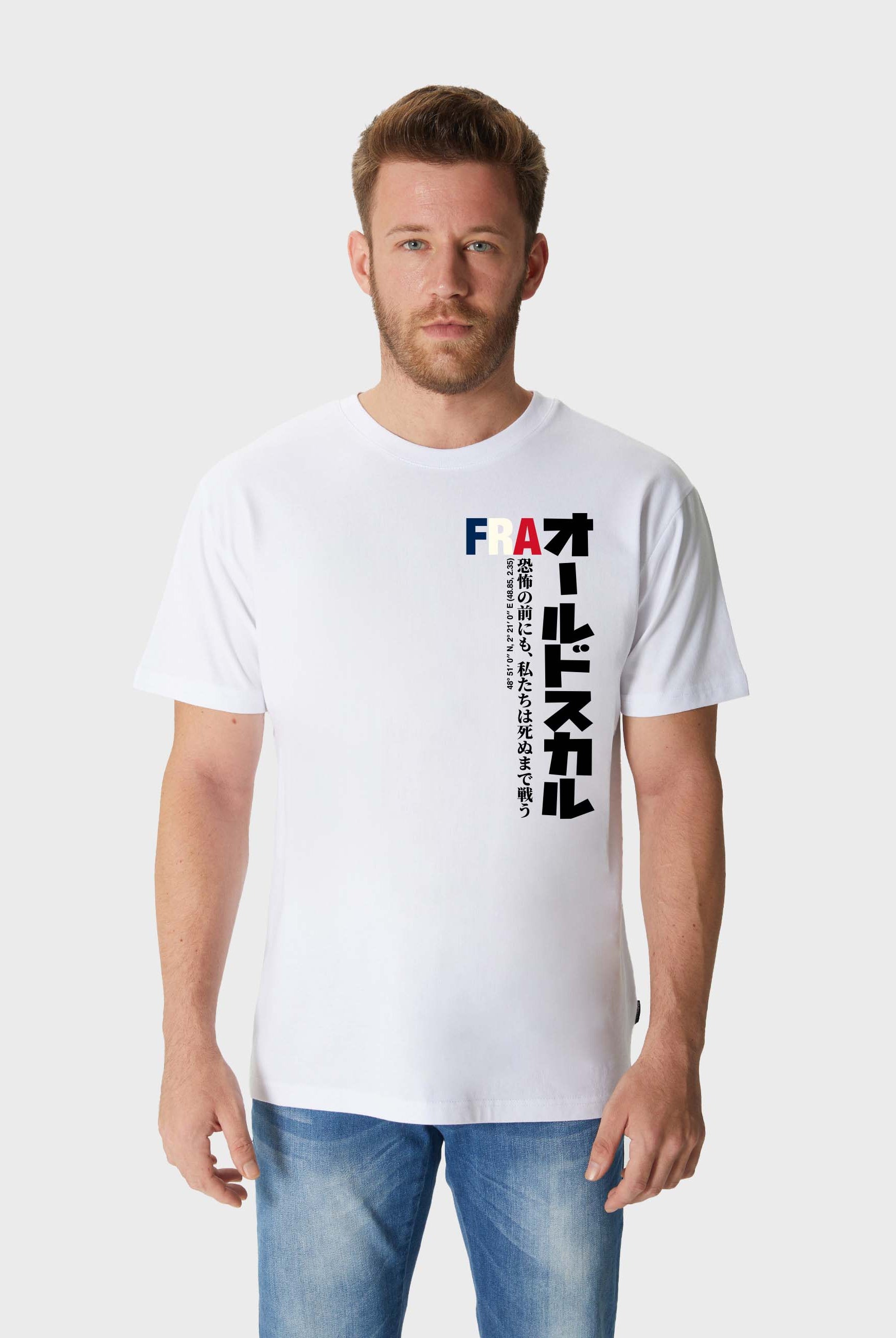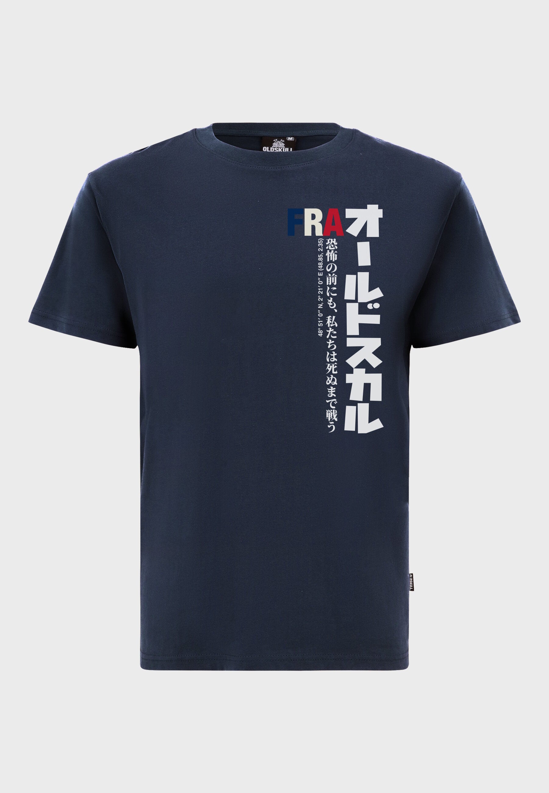 Print: FRA lettering in flag look with Japanese characters Oldskull